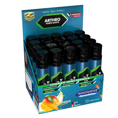 In Artho forte shots, we have combined all the current ingredients associated with joint protection: glucosamine sulfate, chondroitin sulfate, methylsulfonylmethane (MSM), collagen hydrolysate and manganese sulfate.