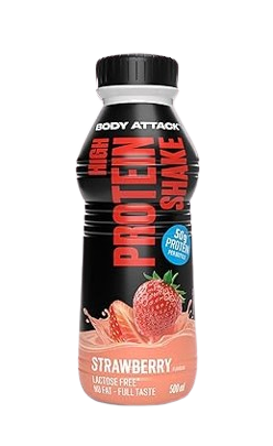 The High Protein Shake from Body Attack is ideal for muscle mass gain, containing 50g of protein/500ml.