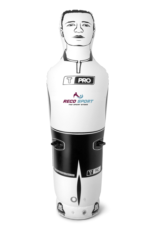 The T-PRO training dummy TEAMI 202 is a modern training device for junior and male sport, that has the size and shape of a fictitious opponent. The T-PRO TEAMI 202 gets its stability and shape only by filling with air (body) and water (foot), thereby reducing the risk of injury to a minimum. It is made of a very resistant and durable foil, which makes it even more stable and long-lasting. If the TEAMI gets hit by a ball or knocked down by the goalkeeper or opponent player, it goes back up itself. It is suitable for indoor and outdoor use.