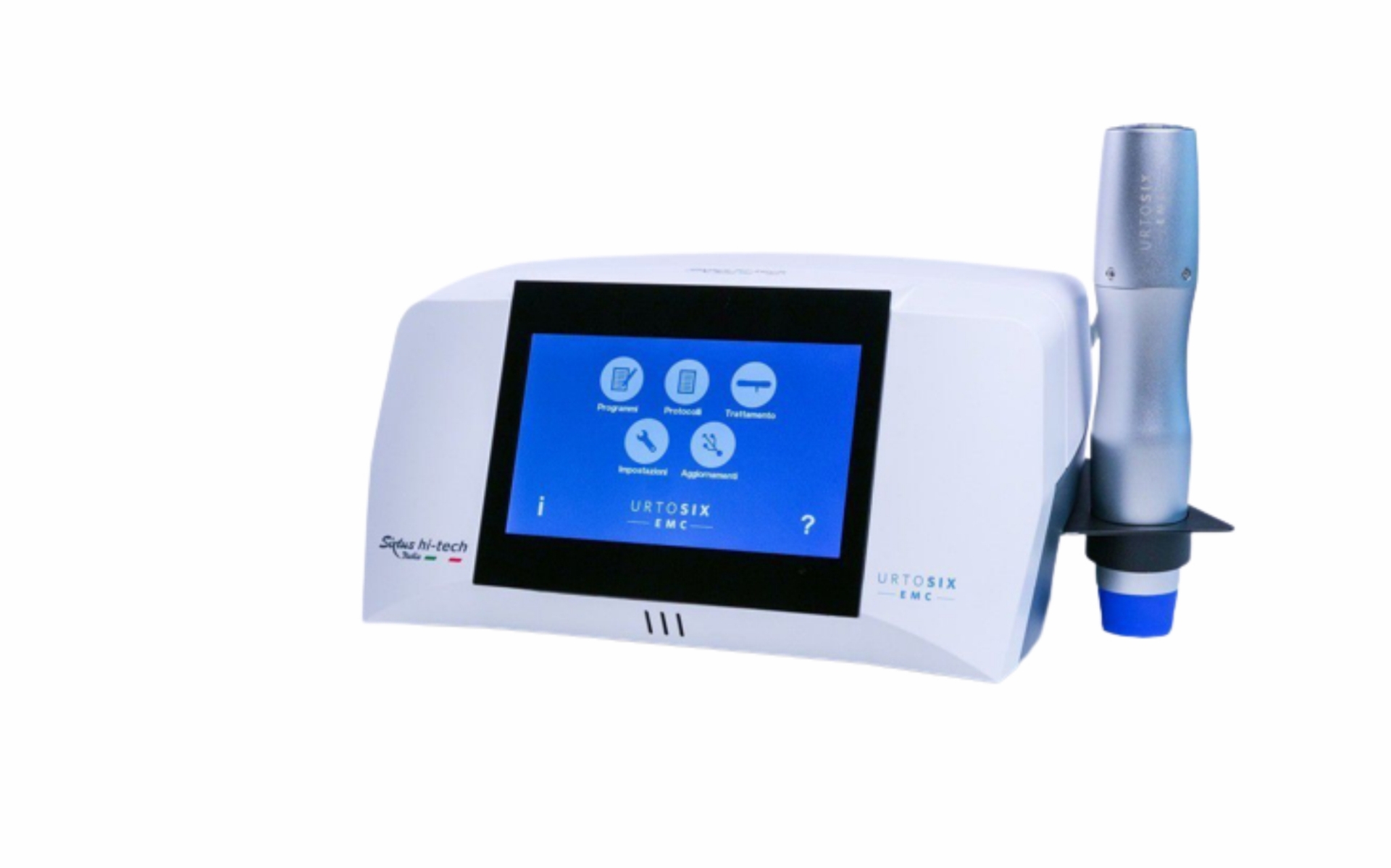 Urtosix EMC is a non-focal (radial) shock wave therapy device that delivers up to 185 mJ (comparable to approximately 6 bars of the pneumatic system) of variable frequency energy.