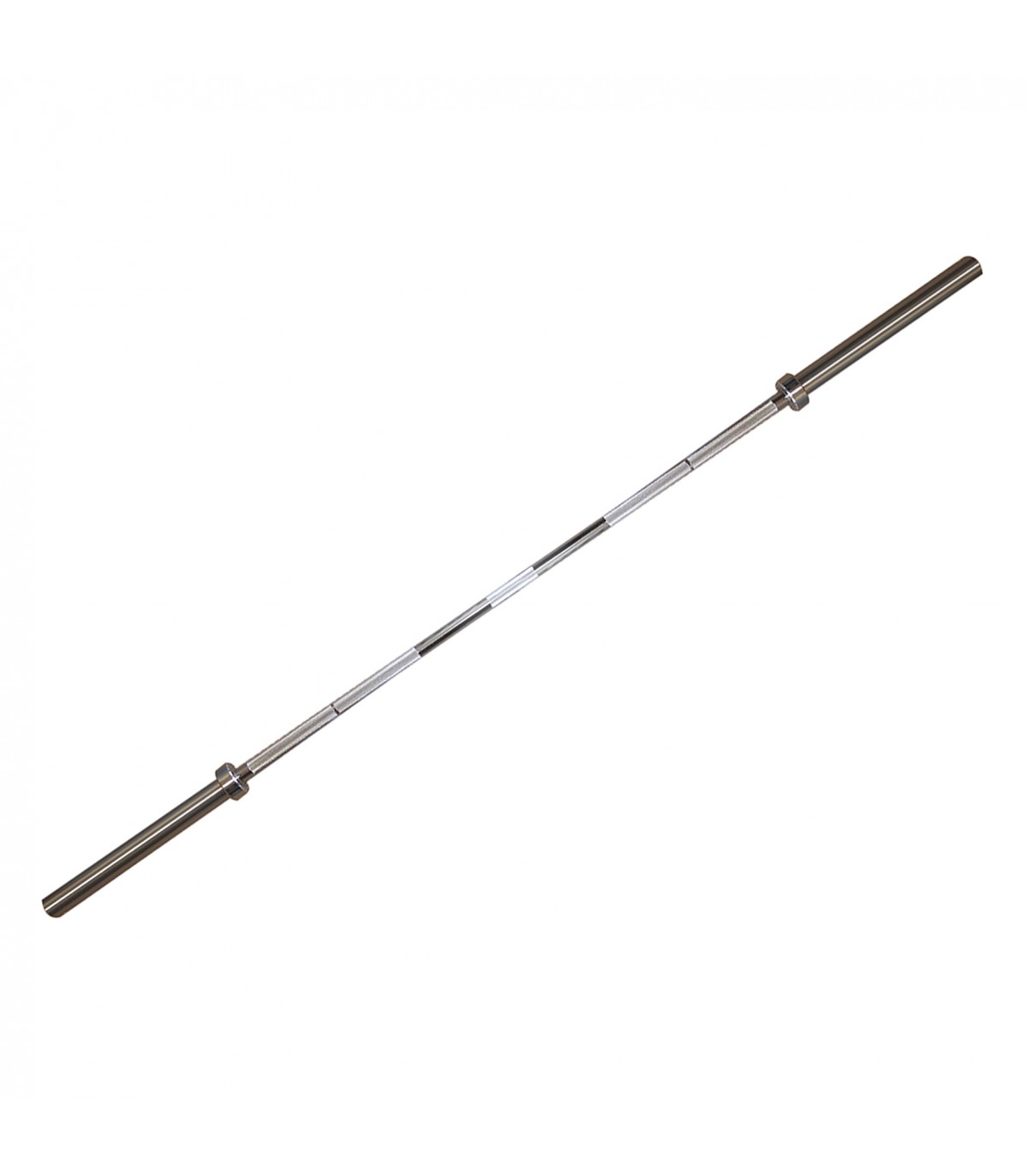 The chrome bar can be used both at the gym and at home. It can be used with 50mm diameter Olympic plates. It has 2 anti-slip surfaces, 2 brass bushings, and 2 needle bearings.